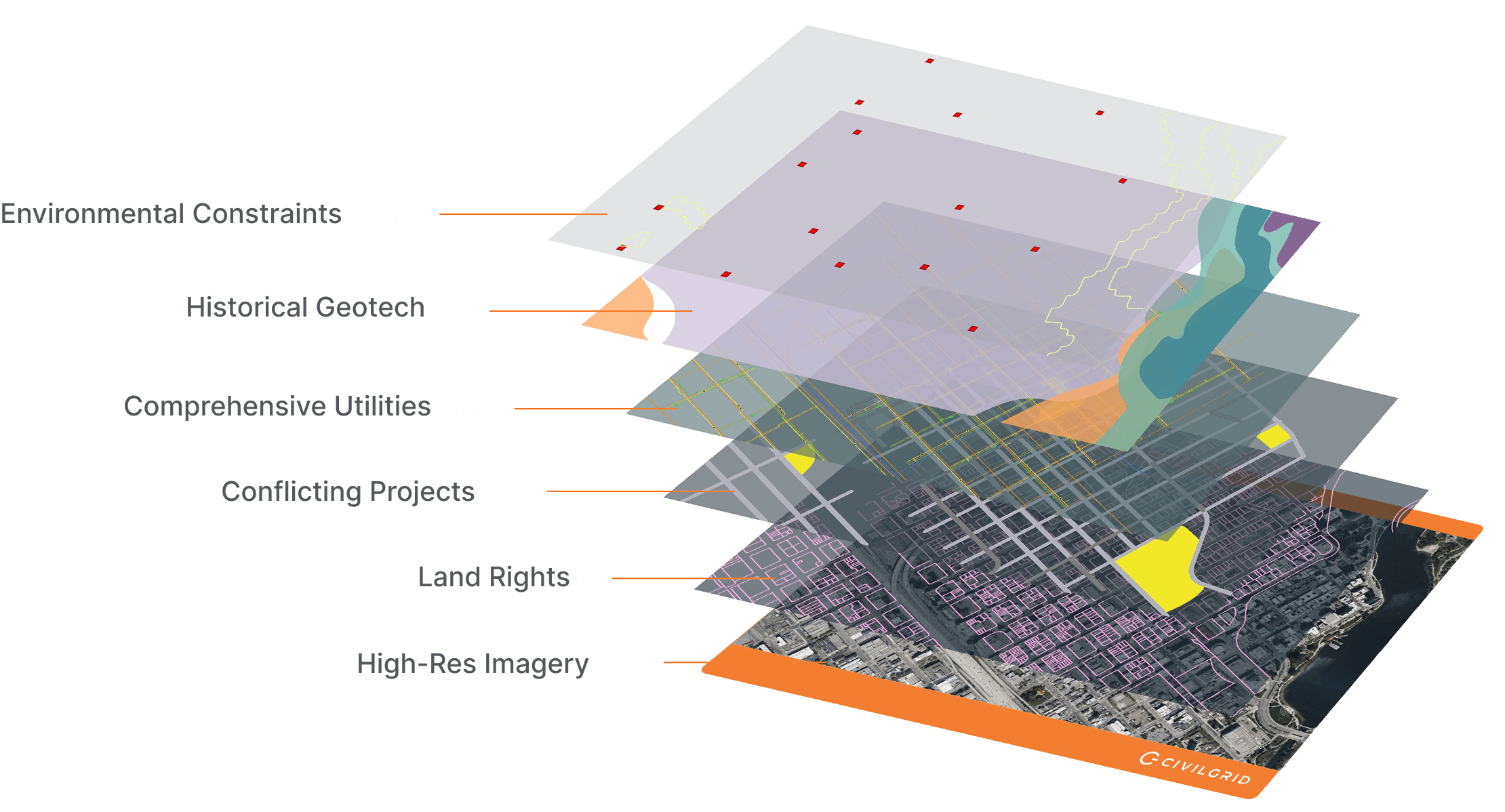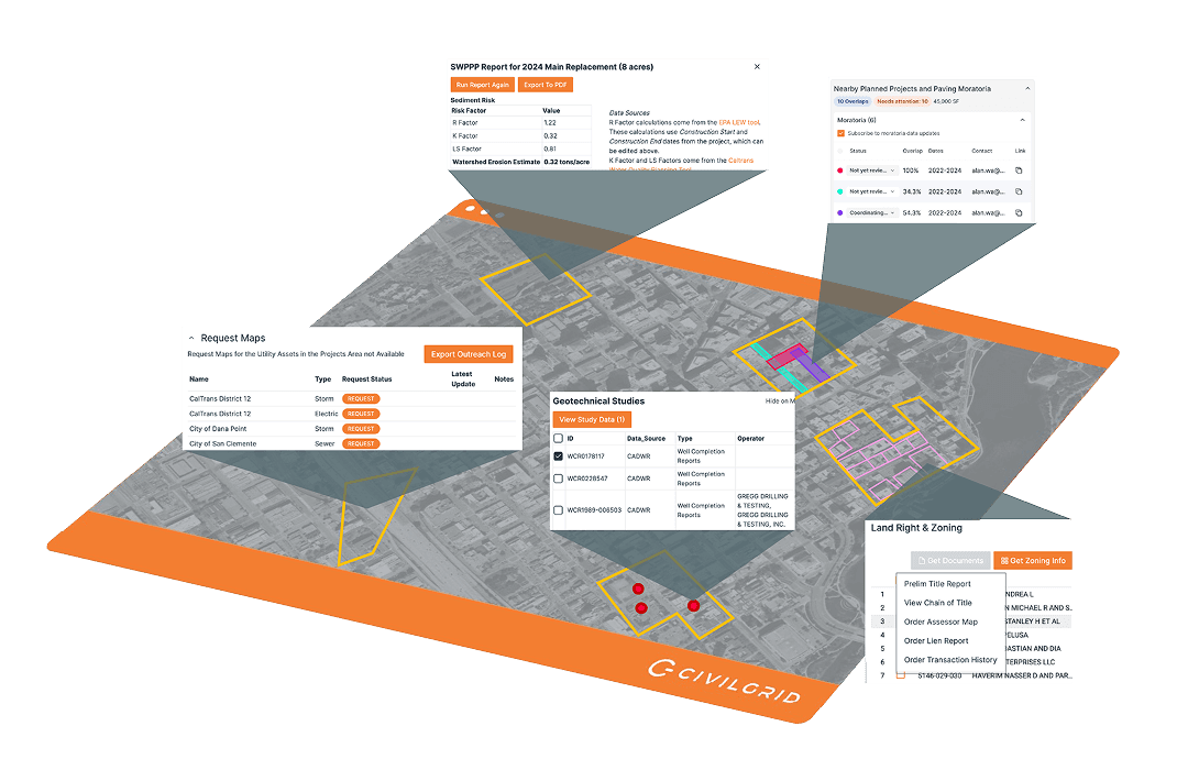 Every project burns weeks searching for agencies, waiting for utility records, and stitching together PDFs. Decisions are made with unidentified utilities, complex permits, unknown soil conditions, environmental risk. The result is predictable: avoidable redesigns, delays, dig-ins, and losses.